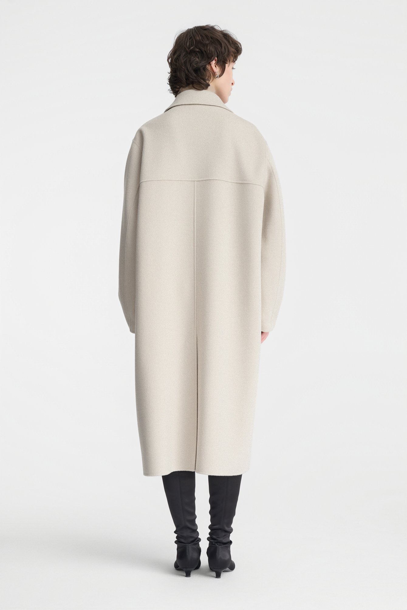 Długi płaszcz w odcieniu écru z wełny i kaszmiru