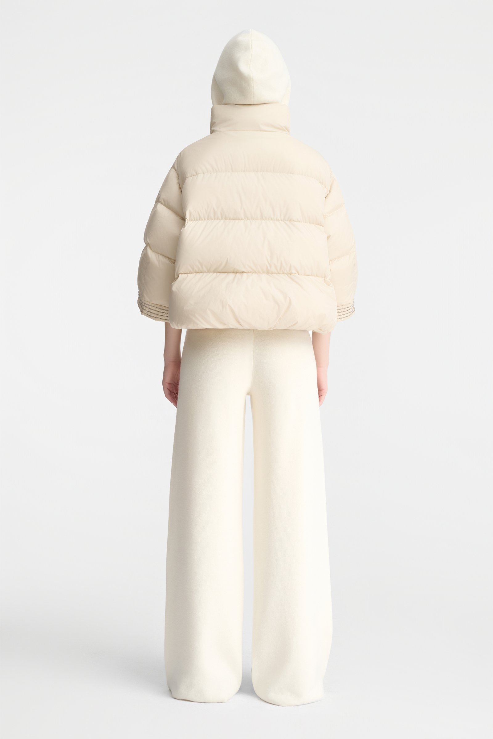 Zachwycająco lekka i otulająca kurtka pikowana o krótkim kroju. Wykonana z tkaniny technicznej i wypełniona naturalnym puchem gęsim z niewielkim dodatkiem piór. To dwustronny model ze stójką zwracający uwagę nieszablonowym krojem – dość krótki, z rozporkami, a także szerokimi rękawami o długości 3/4. Kurtka posiada zapięcie na zamek oraz skośne kieszenie. Każda ze stron tego modelu jest utrzymana w delikatnym i przyjemnym odcieniu écru – na jednej z nich pojawia się dodatkowo ozdobna taśma wieńcząca rękawy. Krótka kurtka puchowa z poziomym pikowaniem to idealne dopełnienie stylizacji na chłodniejsze dni. Można wykorzystać ją zarówno w zestawieniach sportowych, jak i casualowych.