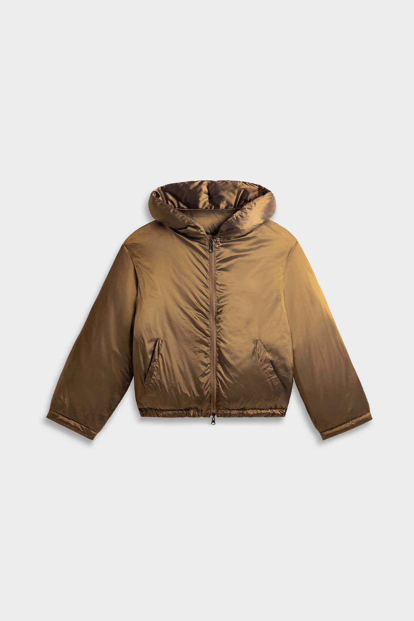 Dwustronna kurtka puchowa z kapturem w odcieniu złocistej oliwki