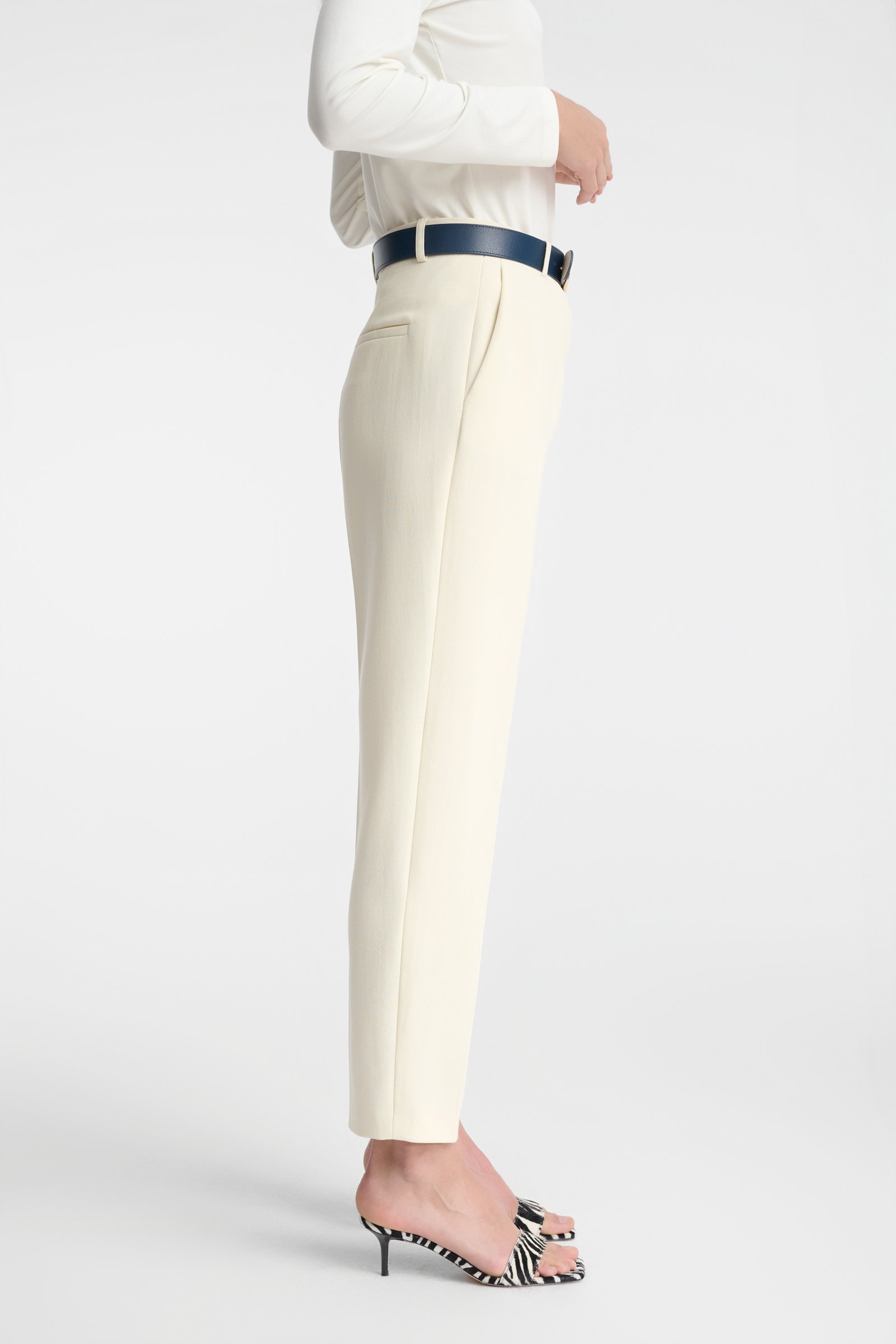 Eleganckie spodnie z kantem w odcieniu ècru