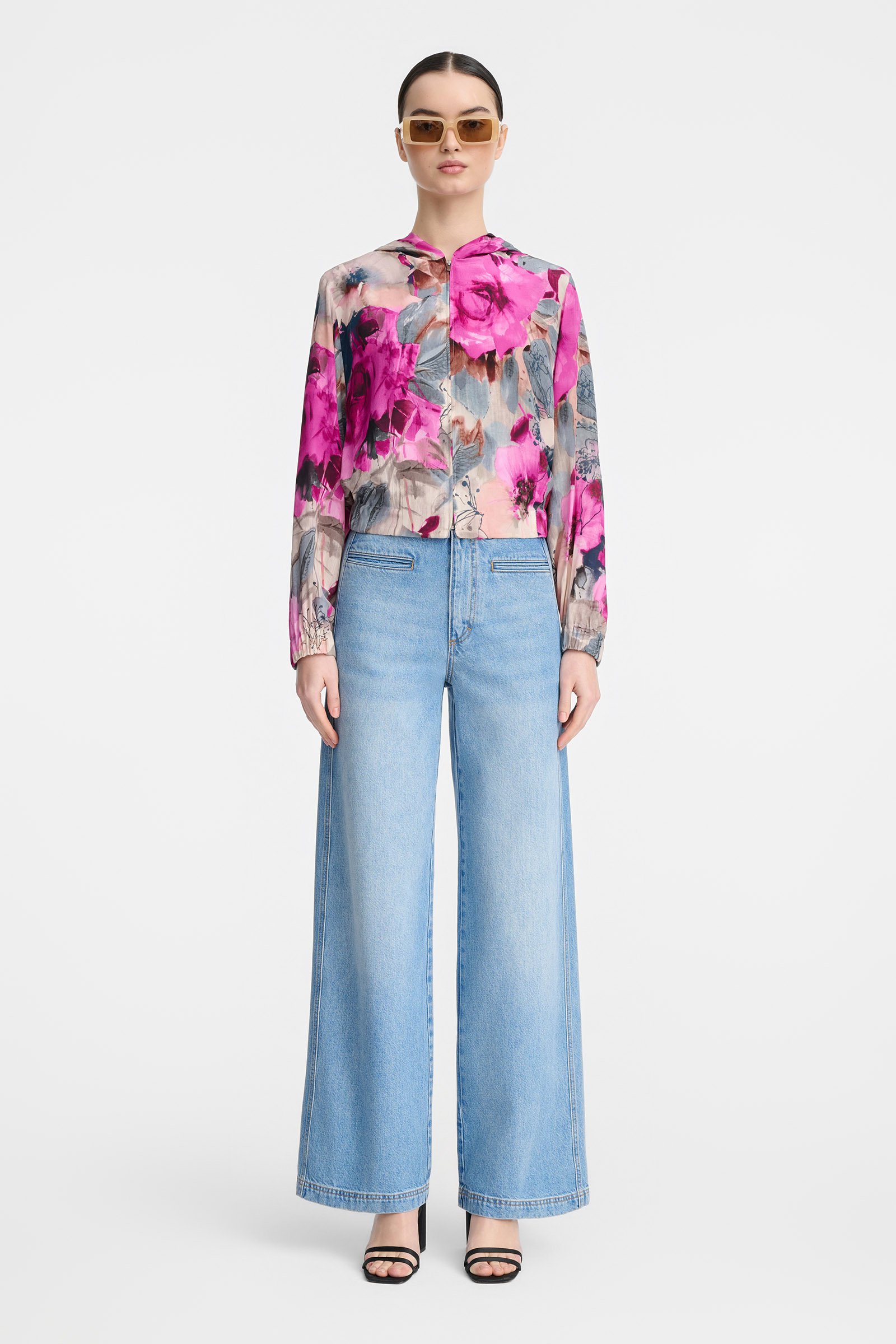 Spodnie jeans uszyte z klasycznego denimu o jasnym odcieniu. Model o długiej, rozszerzanej nogawce wydłuża sylwetkę i nadaje stylizacji wyrafinowanego charakteru. Kryte kieszenie i kieszenie z przodu podkreślają funkcjonalność projektu, a delikatny lampas stanowi nowoczesny, elegancki akcent. Niebieski odcień denimu w połączeniu z dopracowanym krojem sprawia, że model doskonale odnajduje się zarówno w stylizacjach smart casual, jak i w bardziej formalnych zestawieniach z marynarką czy jedwabną koszulą.