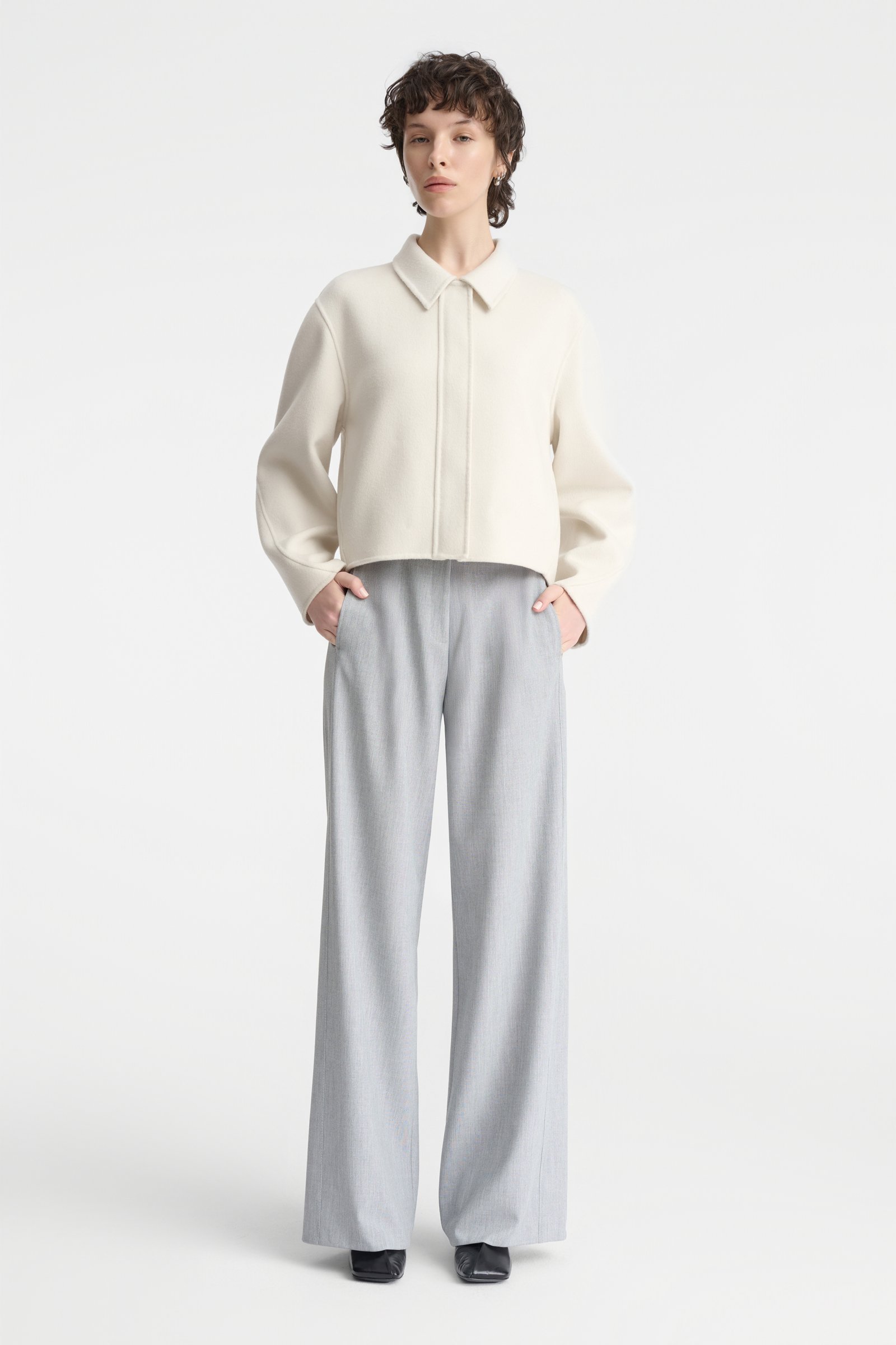 Krótka kurtka z wełny i kaszmiru w odcieniu ècru
