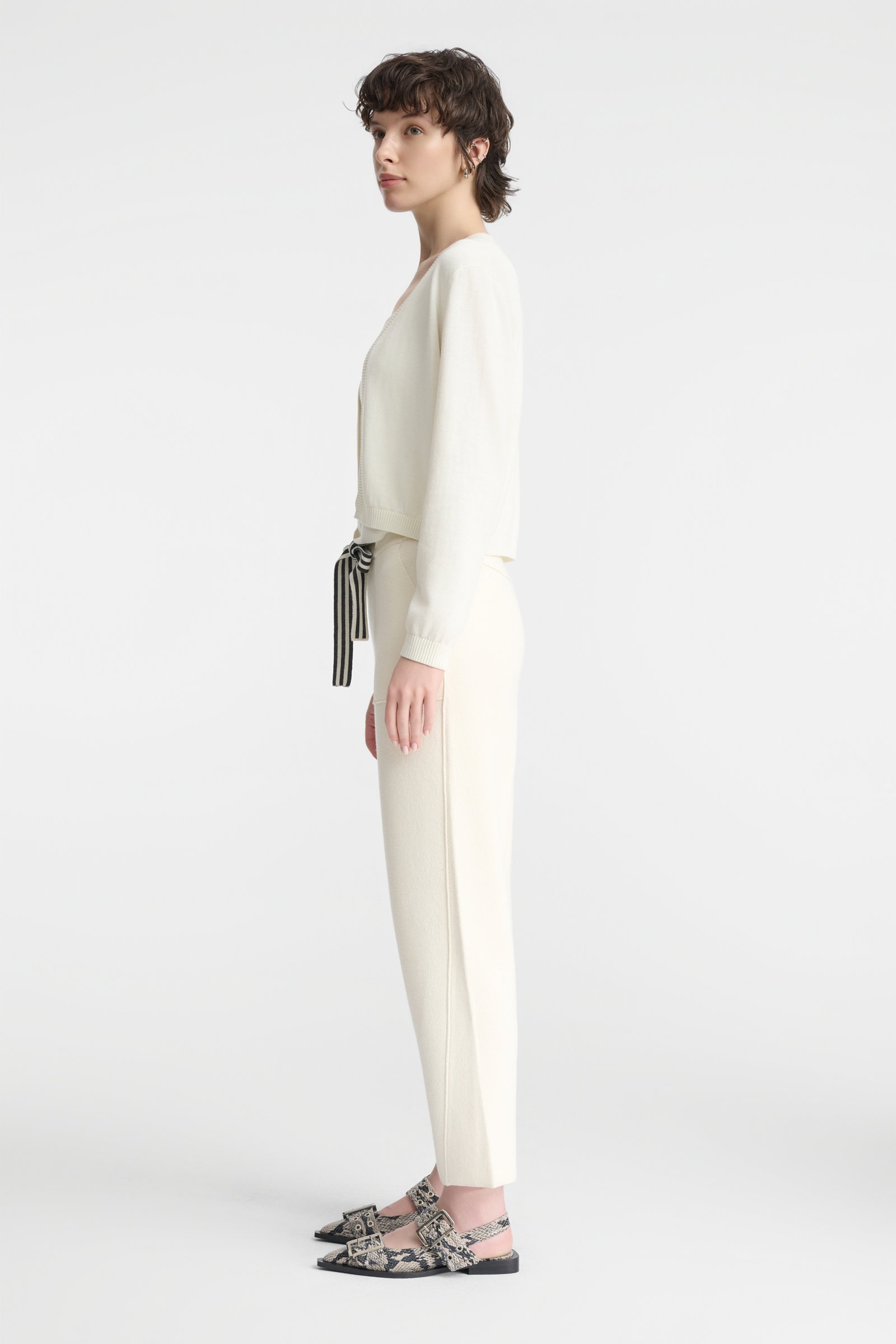 Spodnie z dzianiny swetrowej w odcieniu ècru z kontrastowym wiązaniem
