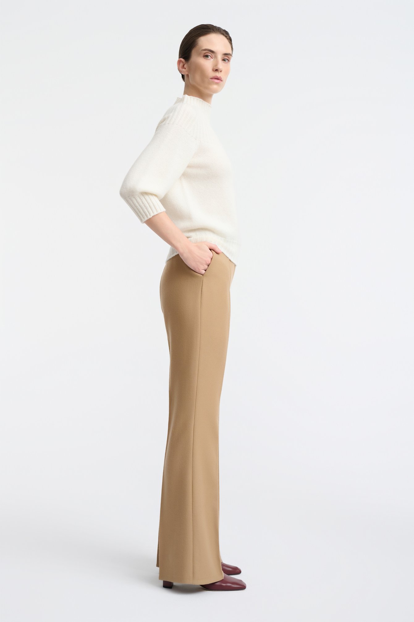 Sweter ze stójką z wełny i kaszmiru w odcieniu écru