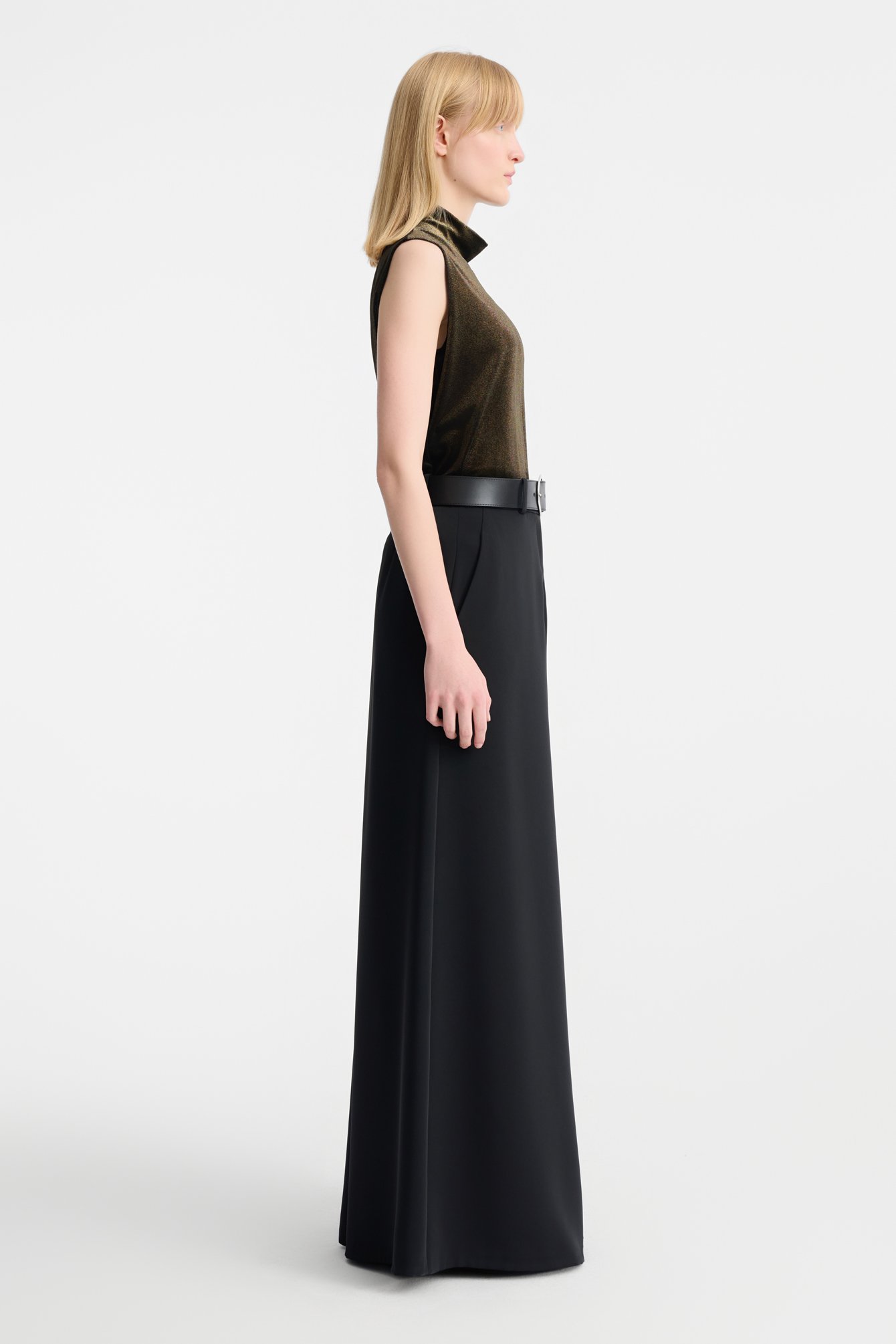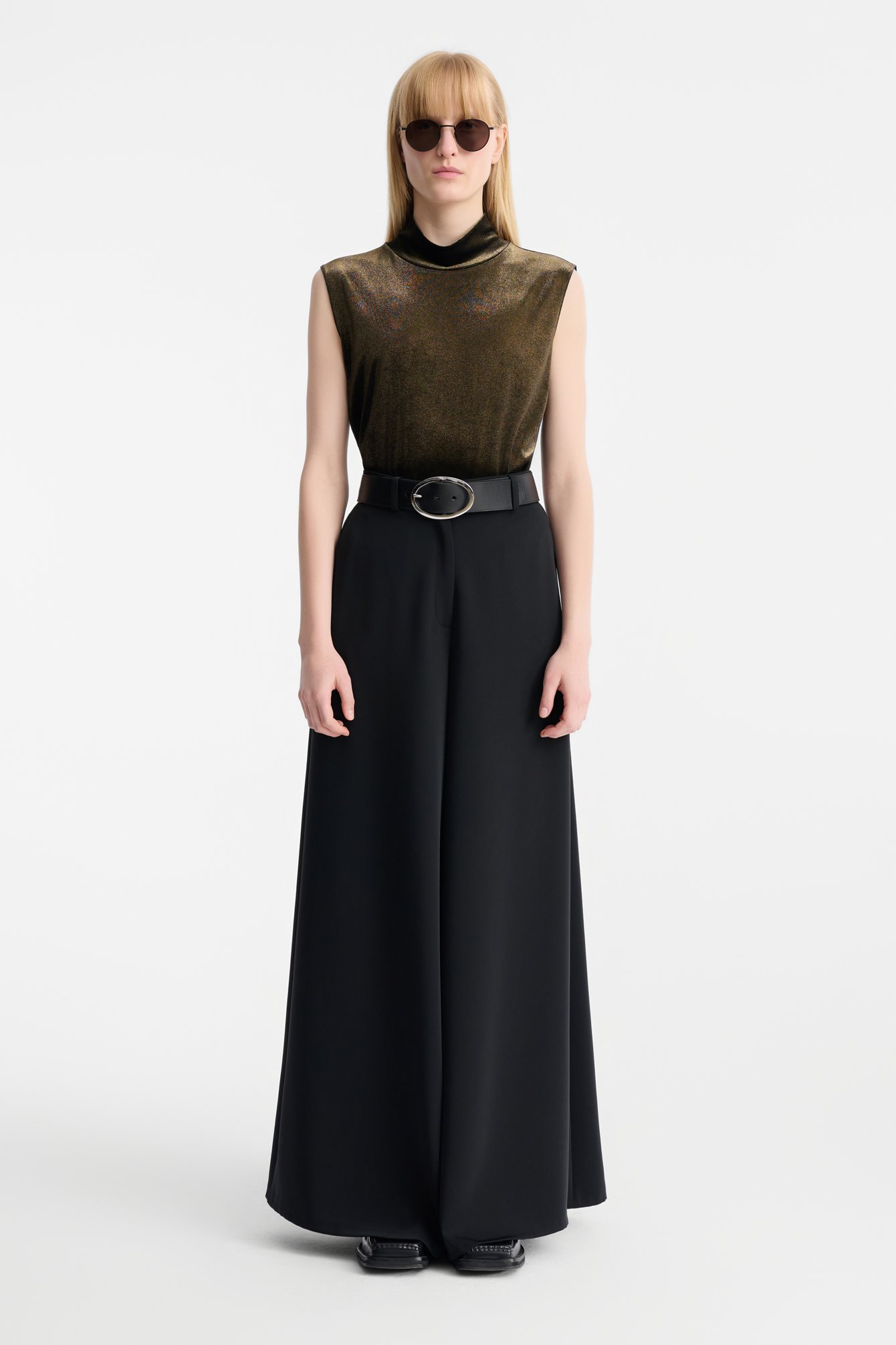 Złota elegancka bluzka bez rękawów z połyskiem i półgolfem